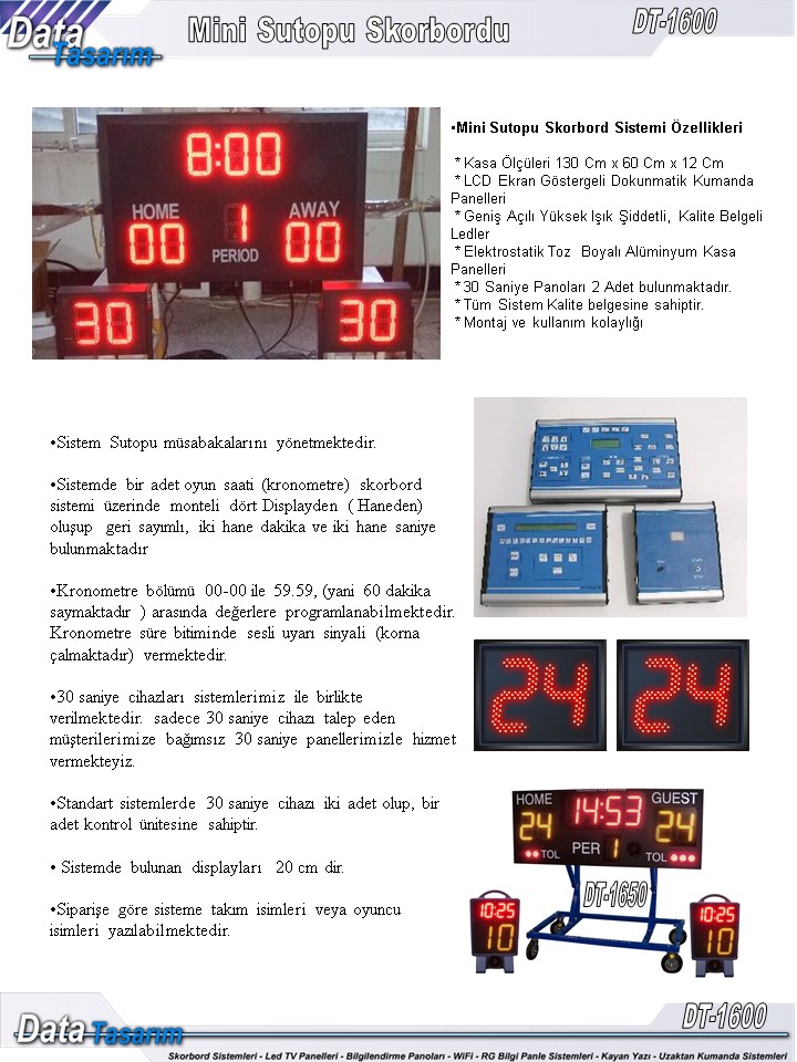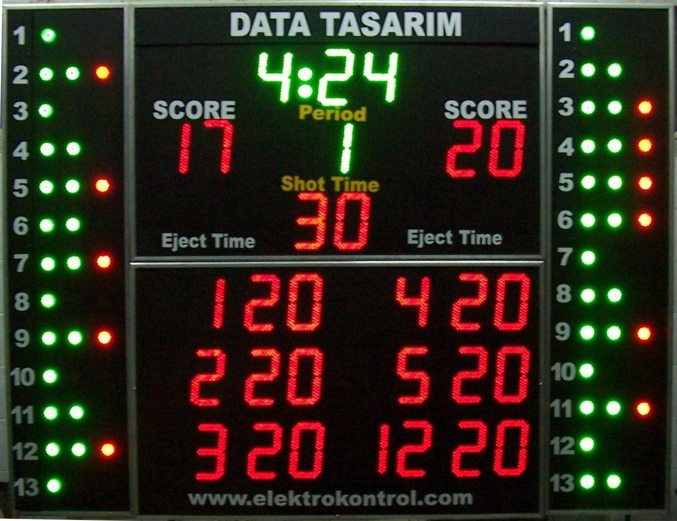 Bu teknik özellikler, sutopu müsabakalarında kullanılabilir skorbord olmalıdır. Skorbord bölümleri;